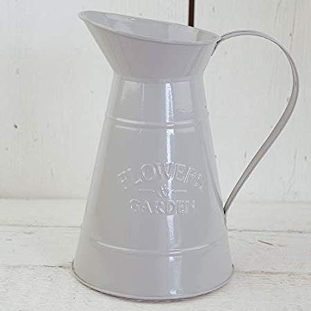 A rustic style grey jug with an embossed Flowers and Garden slogan.