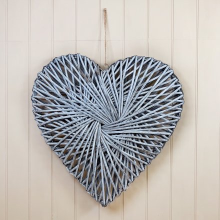A rustic living rattan heart wreath with a grey washed finish with a stylish jute string hanger.